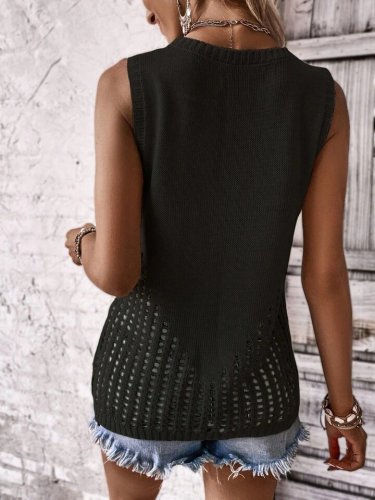 • Bluzka damska bez rękawów, dzianinowa, z okrągłym dekoltem i ażurowymi detalami po bokach