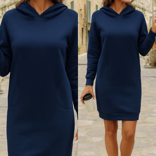 • Sukienka damska z długim rękawem i kapturem, krótka, dwuczęściowa