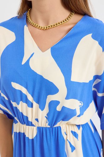 2511 Sukienka z elastycznym pasem i wzorem – niebieska