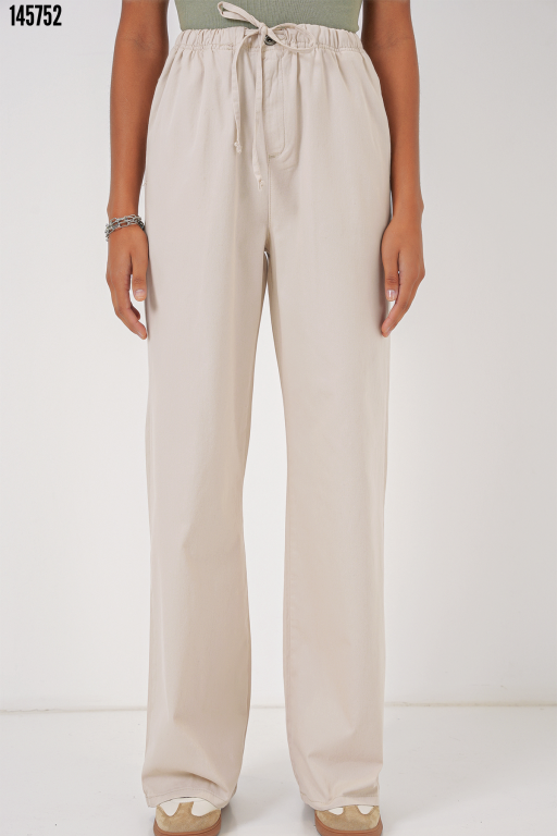 • 6690 Spodnie z szerokimi nogawkami i wysokim stanem – kremowe