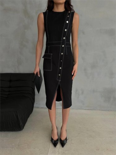 • SUKIENKA OŁÓWKOWA Z GABARDYNY Z GUZIKAMI I DEKORACYJNYMI ROZCIĘCIAMI - Beżowa