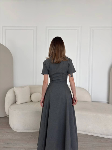 Sukienka z krótkim rękawem i rozpinaną spódnicą dzwonkową z przodu - antracytowa