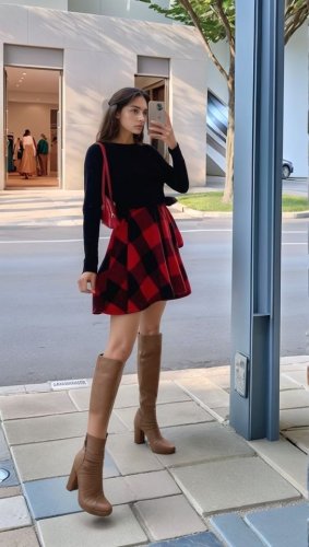 • Damska sukienka w kratę z długim rękawem i okrągłym dekoltem, dół z wiskozy