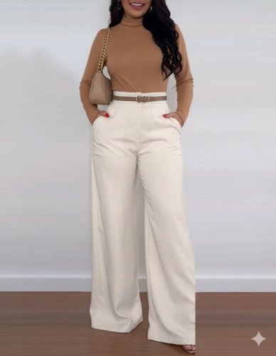 • Damskie spodnie z wysokim stanem i szerokimi nogawkami, z ozdobnymi kieszeniami, importowane z krepy