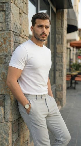 • Spodnie materiałowe męskie o dopasowanym kroju