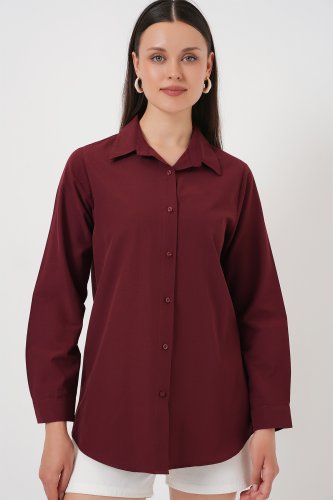 Koszula z długim rękawem basic 20279 - Bordowa czerwień