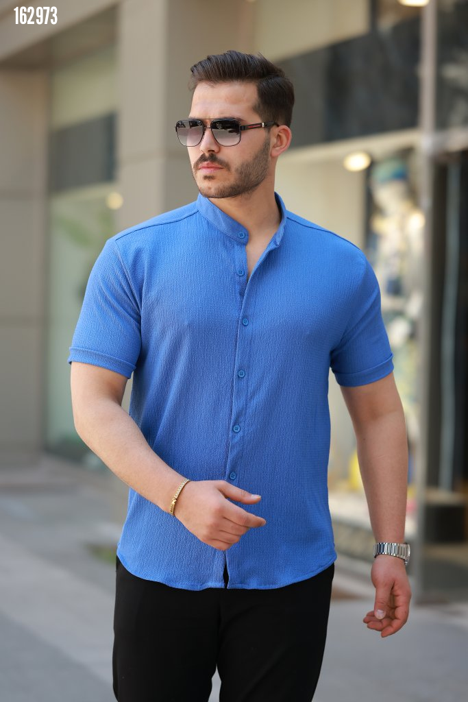 • Koszula męska z okrągłym dekoltem i krótkim rękawem