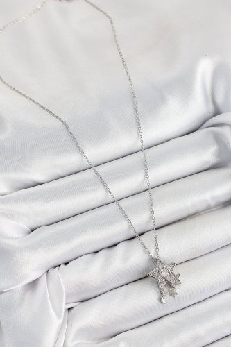 • Naszyjnik damski z cyrkonii ze stali 316L w kształcie gwiazdy w kolorze srebrnym