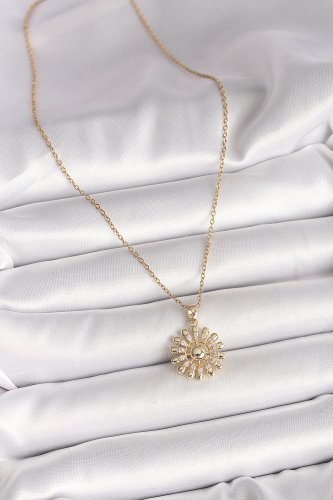 • Naszyjnik damski ze stali 316L w kolorze złotym z cyrkoniami i wzorem słońca