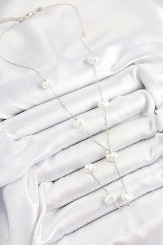 Naszyjnik damski z perłami mosiężnymi w kształcie serca, model Y, kolor srebrny