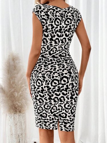 Damska sukienka do nurkowania z krótkim rękawem i kwadratowym dekoltem w panterkę