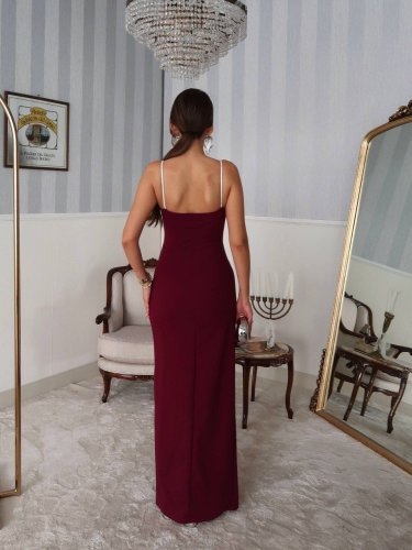 • Długa sukienka damska na ramiączkach z głębokim rozcięciem