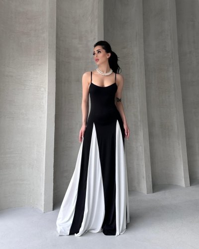długa sukienka damska na ramiączkach, biała, z detalami