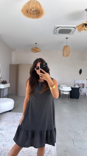 • Sukienka damska z falbanką i spódnicą z okrągłym dekoltem