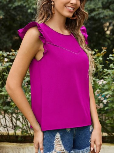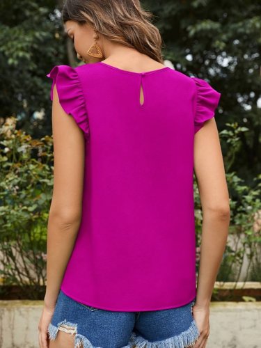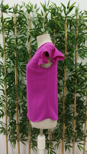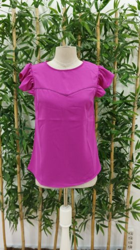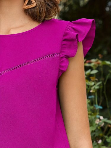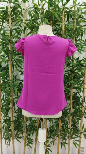 • Bluzka damska z krepy z okrągłym dekoltem i bufiastymi rękawami