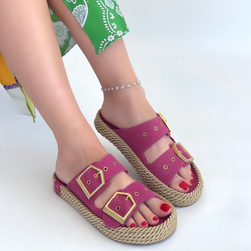 • Loera Pemba Nubukowe kapcie z podwójną klamrą