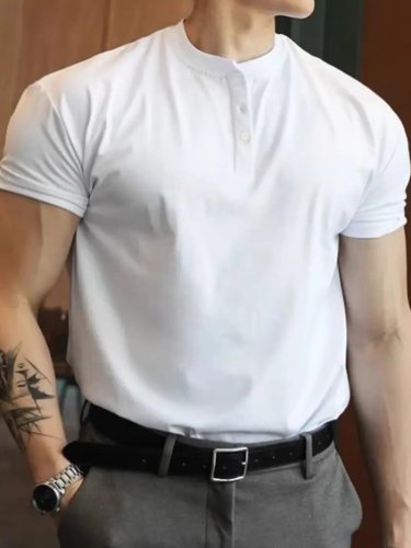 Męska bluzka wiskozowa z krótkim rękawem, okrągłym dekoltem i zapięciem na guziki