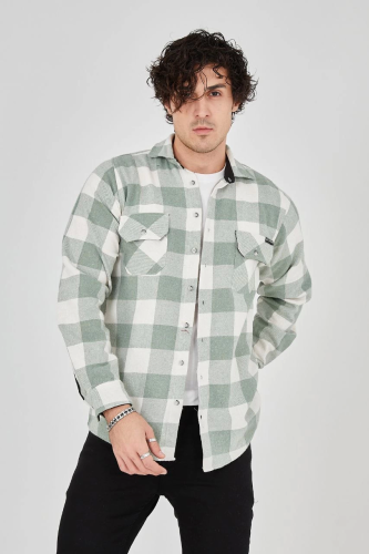 • Męska koszula drwala z długim rękawem – miętowa zieleń