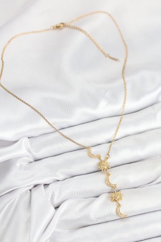 • Naszyjnik damski ze stali 316L z cyrkoniami, model Słońce i Księżyc, kolor złoty