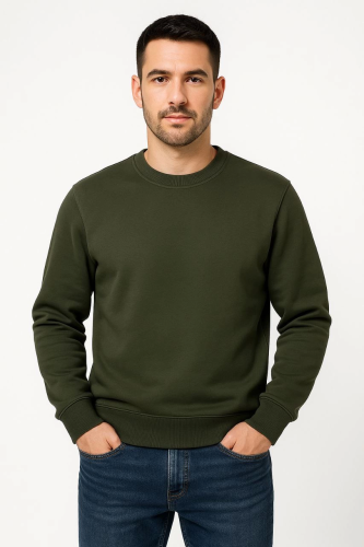 • Męska bluza z okrągłym dekoltem i trzema nitkami – khaki