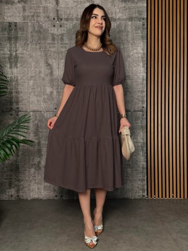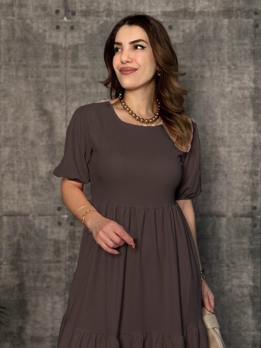 • Damska sukienka z krótkim rękawem i odkrytym kołnierzem, warstwowa, typu bańka