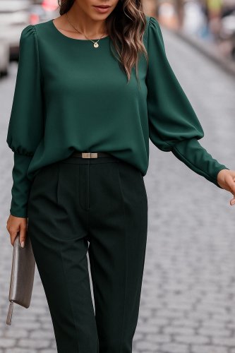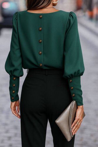 • Damska bluzka z długim rękawem, okrągłym dekoltem i guzikami, importowana z krepy