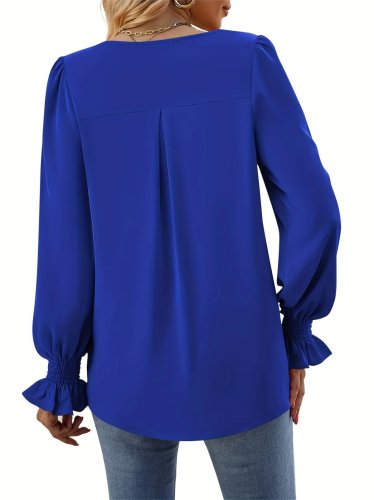 • Damska bluzka z długim rękawem i dekoltem w serek, na co dzień, importowana, z krepy