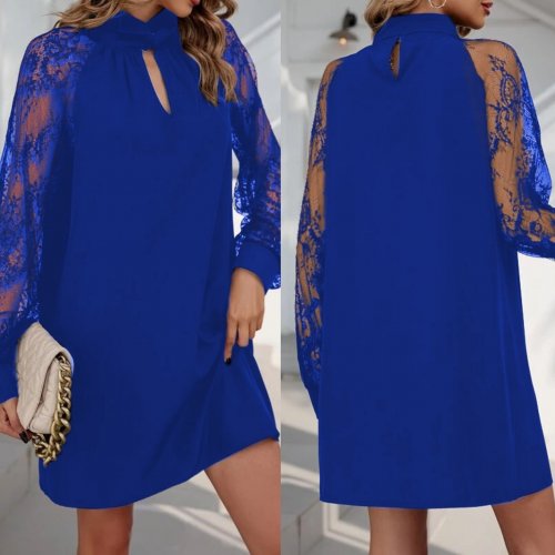 • Damska sukienka mini z długim rękawem i piaskowym wykończeniem