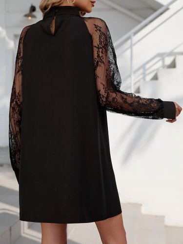 • Damska sukienka mini z długim rękawem i piaskowym wykończeniem