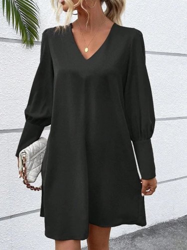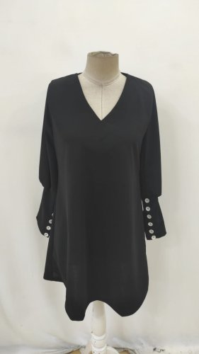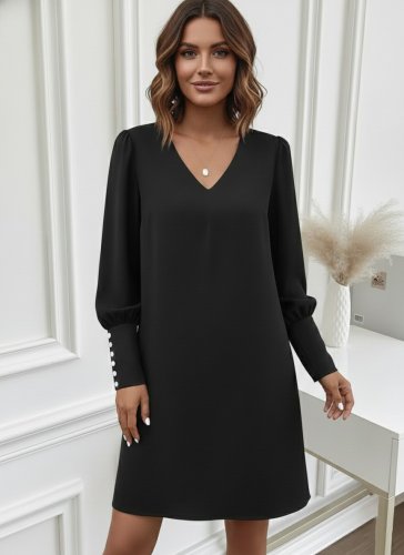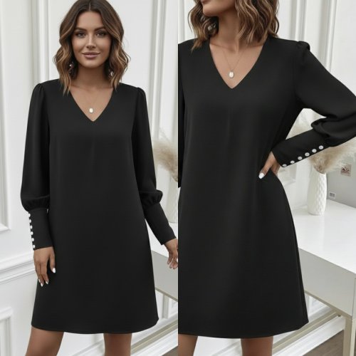 • Damska sukienka z długim rękawem i dekoltem w serek, krótka, importowana, z krepy