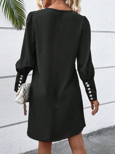 Damska sukienka z długim rękawem i dekoltem w serek, krótka, importowana, z krepy