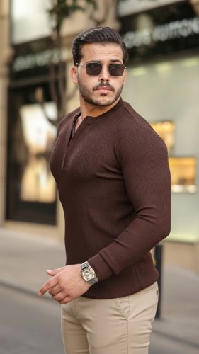 • Męska dzianinowa bluza z długim rękawem i okrągłym dekoltem zapinana na zamek