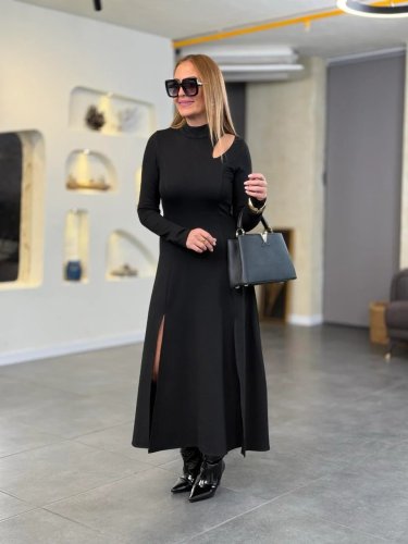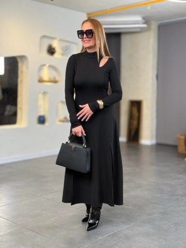 • Damska sukienka maxi z golfem i rozcięciem, wykonana z dwóch przędz wiskozowych