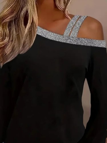 Damska bluzka z długim rękawem i paskiem na ramię, z wiskozy dwunitkowej z połyskiem