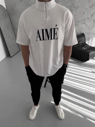 • Koszulka unisex z nadrukiem i zamkiem błyskawicznym – biała