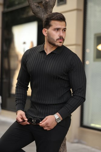 • Męska gruba, prążkowana dzianina z długim rękawem