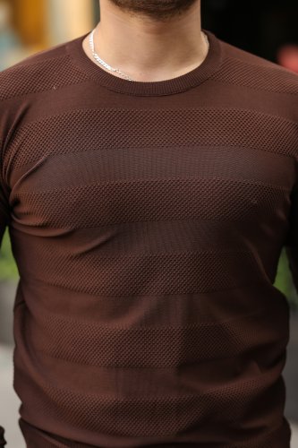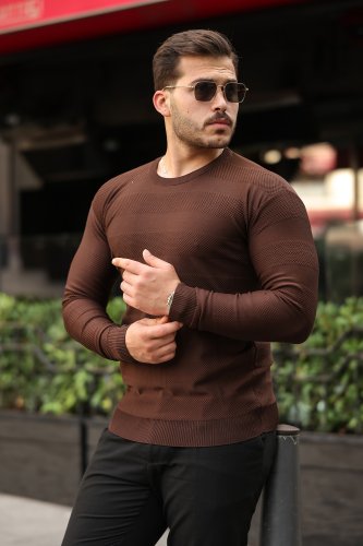 • Męska dzianinowa odzież z okrągłym dekoltem i długim rękawem