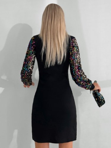 Damska sukienka na ramiączkach z długim rękawem i cekinami, z okrągłym dekoltem i krótką bluzką