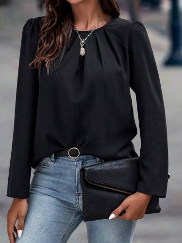 Damska bluzka z długim rękawem i plisowanym przodem, wykonana z importowanego krepu
