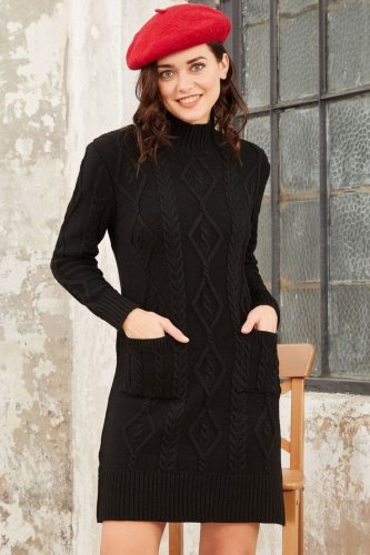 • Sukienka dzianinowa Loren o długości midi z motywem wełny