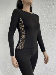 • Bluzka damska z długim rękawem i wiskozowymi paskami w panterkę