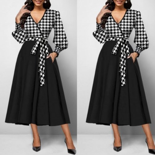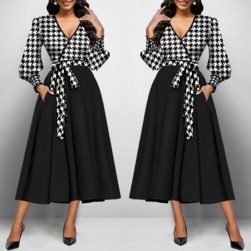• Damska sukienka midi z długim rękawem, dwurzędowa, z krepy scuba
