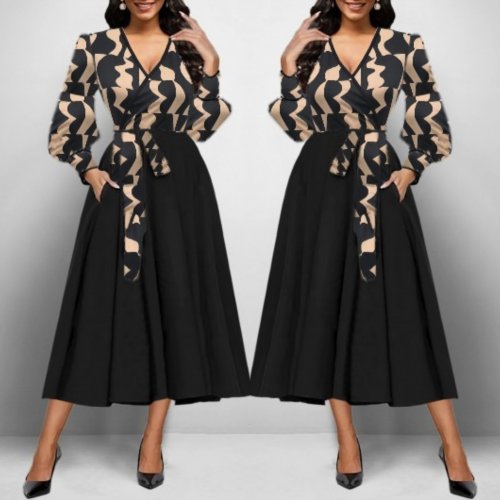 • Damska sukienka midi z długim rękawem, dwurzędowa, z krepy scuba