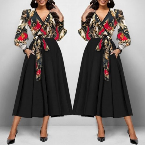 • Damska sukienka midi z długim rękawem, dwurzędowa, z krepy scuba