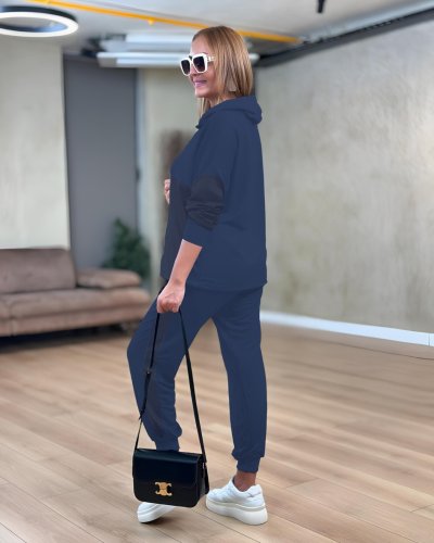 • Dwuczęściowy damski garnitur z długim rękawem i kapturem, wykonany z wiskozy, składający się z bluzki i spodni