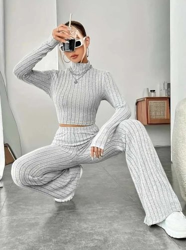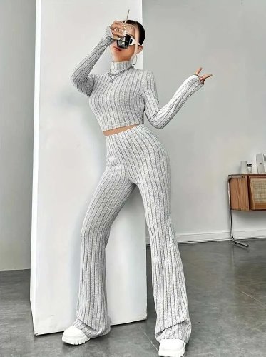 Damski dwuczęściowy komplet z golfem i spodniami typu halka