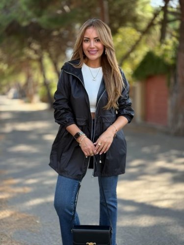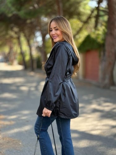 Damski płaszcz przeciwdeszczowy z kapturem i ściągaczem