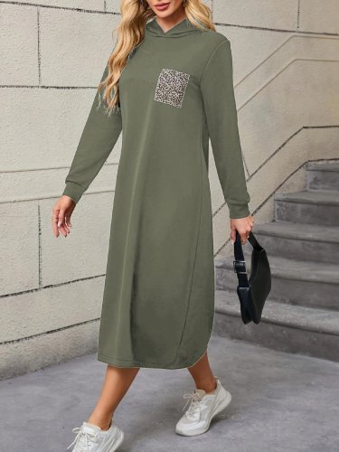 Długa sukienka damska z długim rękawem, kapturem i kieszenią, wykonana z wiskozy z dwóch przędz