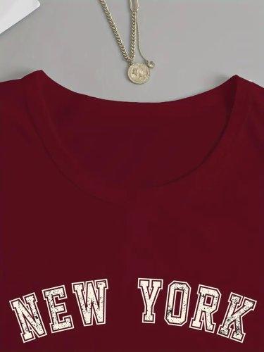 Bluzka damska z wiskozy z długim rękawem i okrągłym dekoltem, z nadrukiem tekstowym