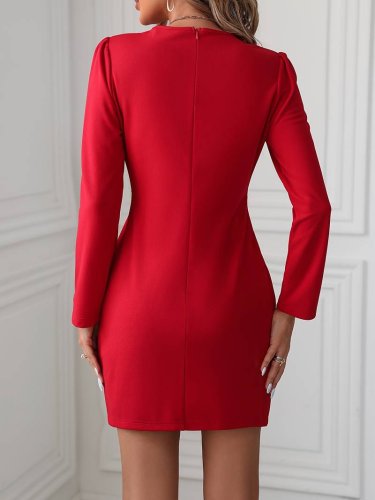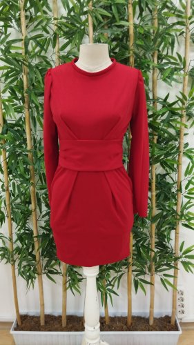 • Damska sukienka z długim rękawem i okrągłym dekoltem, z importowanego krepu, z paskiem w talii